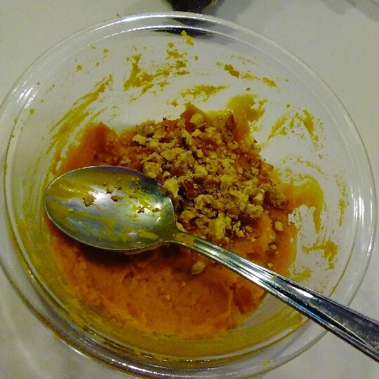 いつものかぼちゃサラダですが、生クリームとクルミでリッチに仕上がりました^^