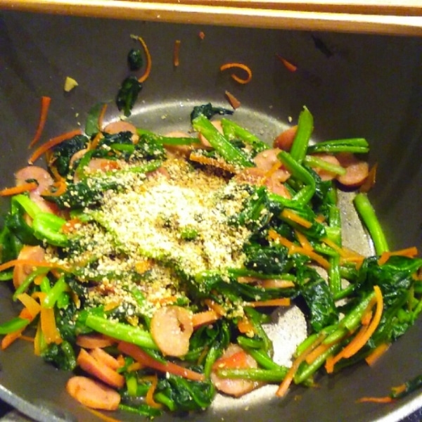 粉状にした松の実が水分を吸ってくれるので、お弁当に入れてもベチャッとしません^^