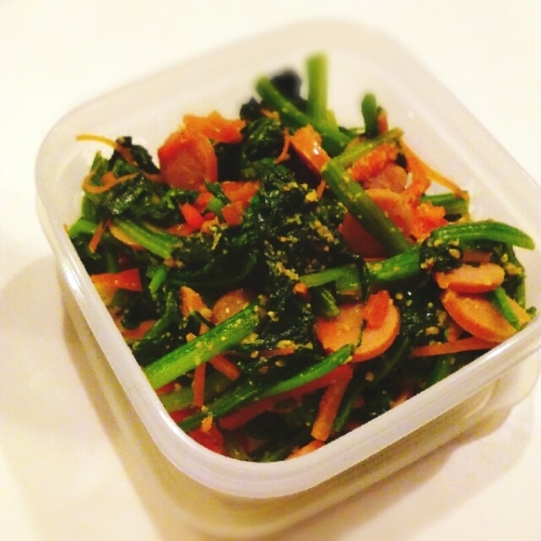すりごまで作るより優しい味わいです。松の実が水分を吸ってくれるので、ほうれんそうの水気が気になりません。炒めるときに水分が多いようなら、調味料を入れる前にキッチンペーパーで水分を取ってくださいね。