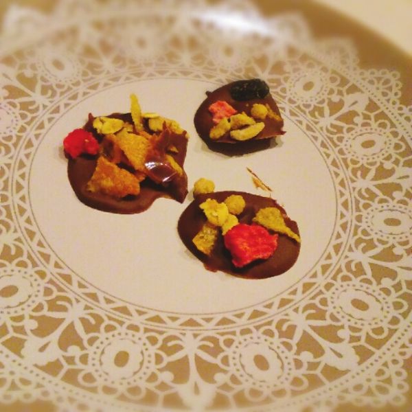 チョコを溶かして、お好みのナッツやドライフルーツを飾るだけ。2歳の子供と作るバレンタイン^^