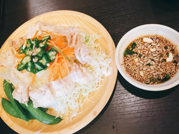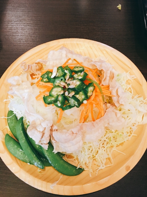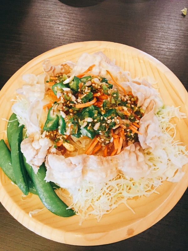 茹でたお肉でさっぱりおいしい美容効果抜群のサラダです!豚肉とナッツのビタミンBとすりおろし生姜で美味しくアンチエイジング!!!生のナッツで栄養素をたくさん取ることが出来ます☺︎