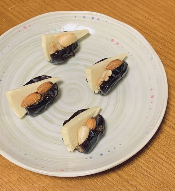 データの甘み・食感と、チーズの塩気とナッツの歯応えが