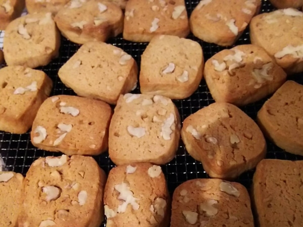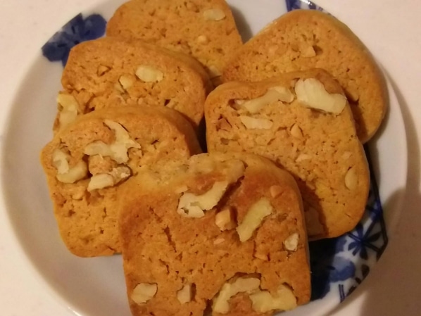 ピーナッツバター消費のため、ピーナッツバタークッキーを作りました。くるみを入れて、旨みと栄養価がアップ!アップ!