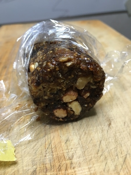 フードプロセッサーにドライフルーツ、好みの香辛料を入れ、混ぜ合わせる