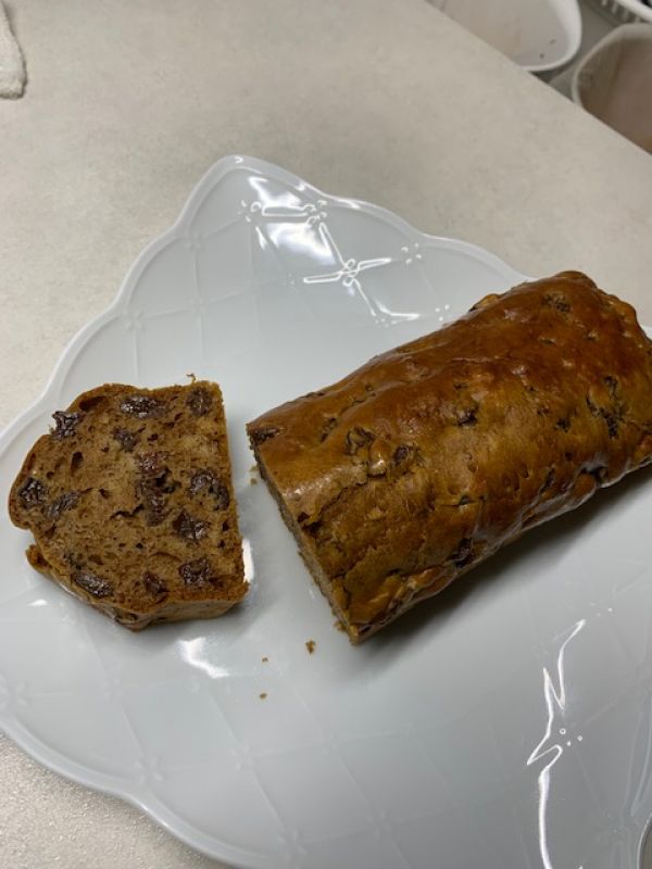 紅茶液にレーズンを浸して置き、次の日、粉類、卵を加えて焼くだけのケーキです。焼きたてはパンのようですが、焼いてから一日おくと、とても簡単で、健康的なのにおいしいケーキになります。