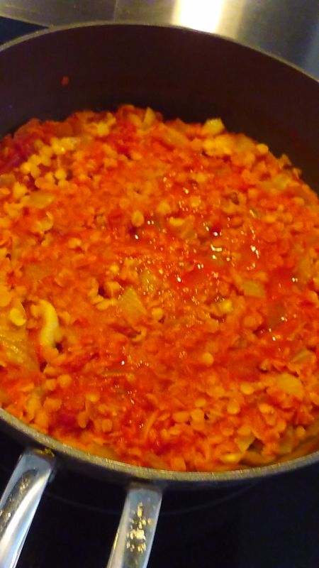 ヒマワリの種とひよこ豆を使った、タンパク質豊富なトマトソース。ヒマワリの種は「生」のものを用意してくださいね。