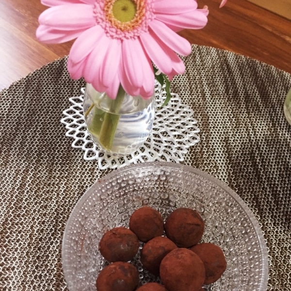 手で小さく丸めて、最後にココアパウダーをまぶして出来上がり♡
