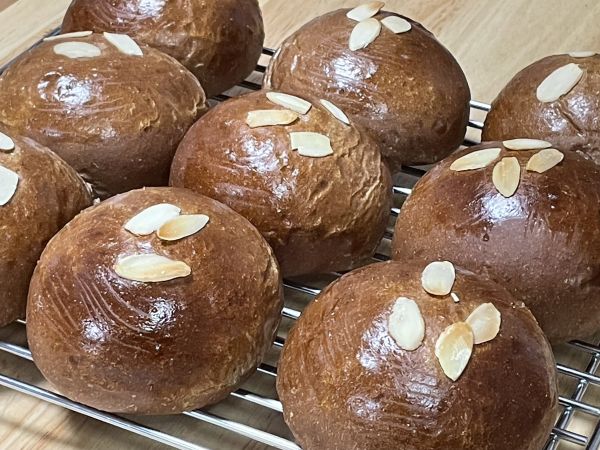 分量外の卵で艶出しをしてスライスアーモンドを飾る。