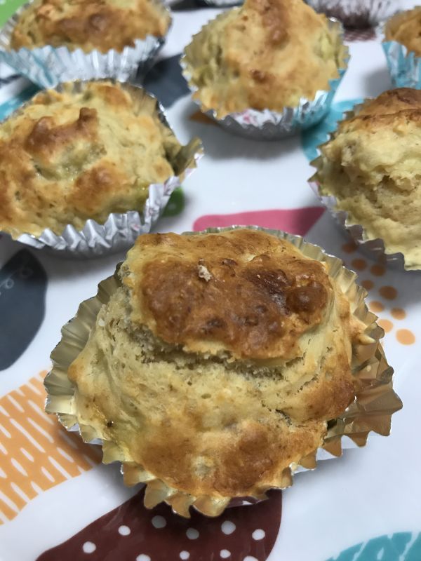 混ぜてトースターで焼くだけの、簡単なカップケーキです♬