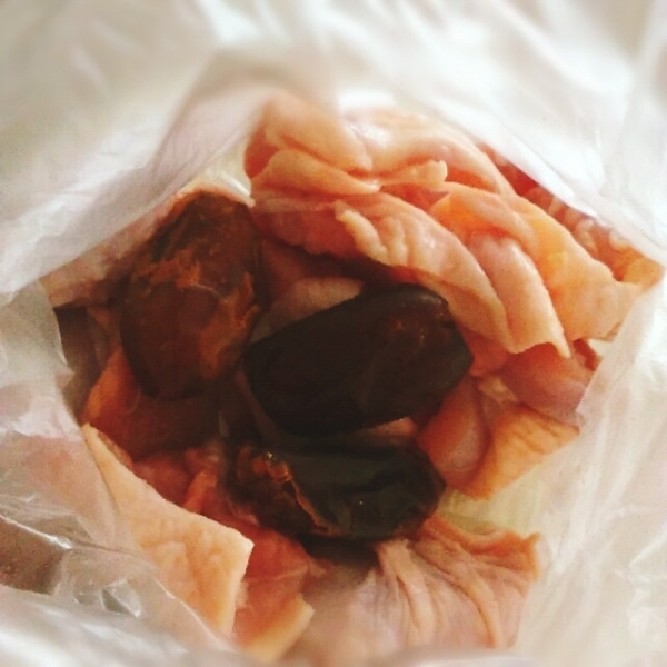 なつめは焼く前に取り出します。でも、一緒につけておくことで、甘みとコクがUPしますよ!黒糖のような風味です^^