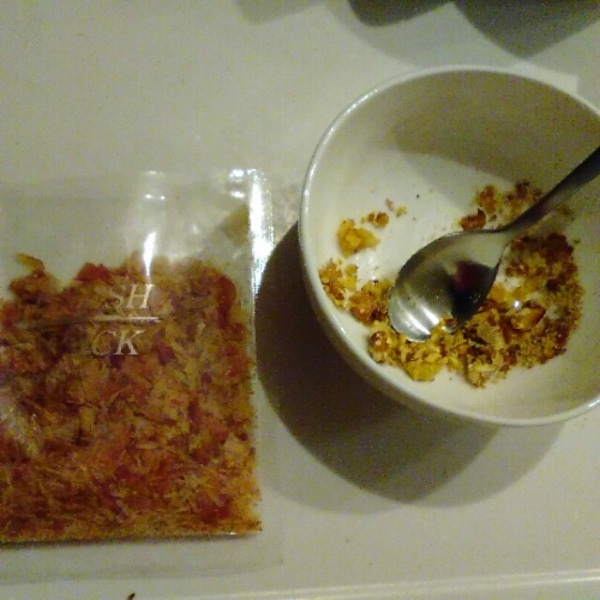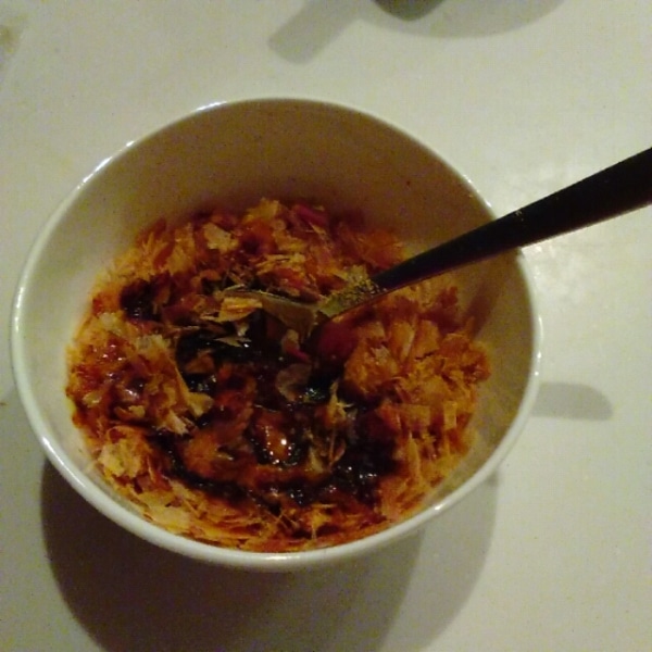最初に甜菜糖とかつお節を混ぜておくこと。甜菜糖は粒が溶けいにくいので、全部一気に混ぜると溶け残りが出ます。