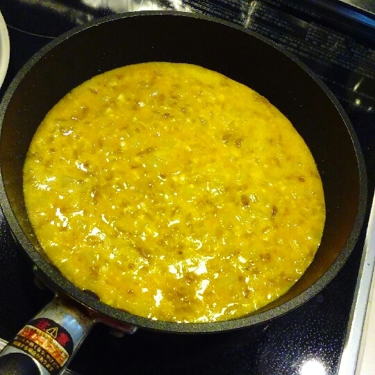 刻んだデーツを入れた美容効果抜群のオムレツ。硬いデーツも、焼いているうちに柔らかくなりますよ。朝食にもおすすめ。
