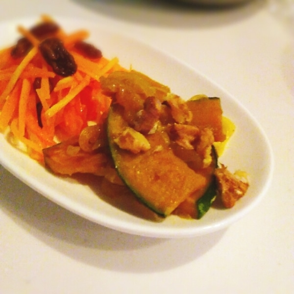 旬のかぼちゃの甘みを生かして、味付けは最小限に。トッピングのクルミのおかげで香ばしさがUP!