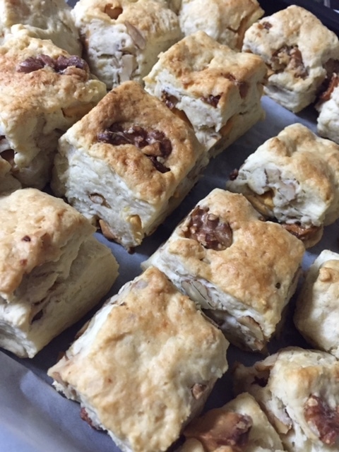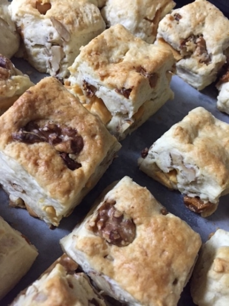 レシピトップ › ドライいちじく(トルコ産)のレシピ › レシピ ドライいちじく(トルコ産)の商品ページへ レシピ投稿 くるみスコーン share × このレシピを共有 LINE X Facebook URLをコピー いいね!1 意外と簡単! くるみの歯ごたえを楽しみたいので、くるみは大きめに刻みます。 牛乳の代わりに豆乳でヘルシーに。 posted by ののんののんさんの他のレシピ 材料 (20個分) 薄力粉400g ベーキングパウダー10g 砂糖大さじ1 無塩バター100g 豆乳200cc くるみひとつかみ 乾燥いちじく2個 板チョコ1枚 作り方 1 ベーキングパウダー、薄力粉、砂糖をふるいにかけ、ボウルに入れておく。 2 無塩バター(ケーキ用マーガリンで代用可)を包丁で適当に刻み、1に入れ、そぼろ状になるまで混ぜ合わせる。 3 2に豆乳を少しずつ加えて混ぜ、ひとまとめにする。 4 3にくるみ、乾燥いちじく、チョコを刻んだものを入れる。 今回はホワイトチョコで作りました。 5 まな板の上に薄力粉(分量外)を敷き、4を広げて包丁で3センチ角程度に切る。切ったものにつや出しのため、豆乳を表面に塗る(指でOK)。 6 190℃に温めて置いたオーブンで20分焼く。 一言コメント 季節や湿度により、豆乳の量が変わるので、調整してください。 関連する商品 ドライいちじく(トルコ産) くるみ