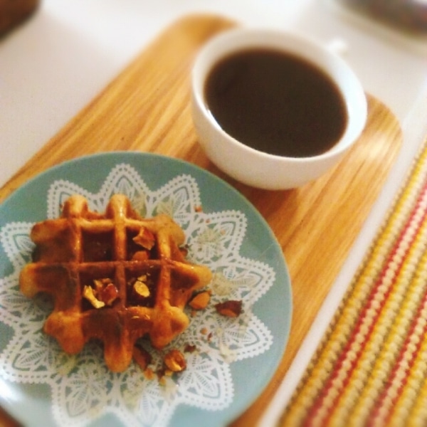 全粒粉を使ったワッフルに、蜂蜜ナッツをかけて栄養価UP!お通じがよくなる最強コンビです。