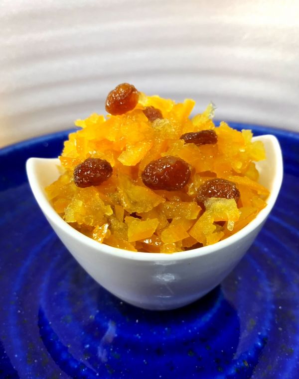 煮詰まって透明感が出てきたら、器に移す直前に、サルタナレーズンを混ぜ合わせる。