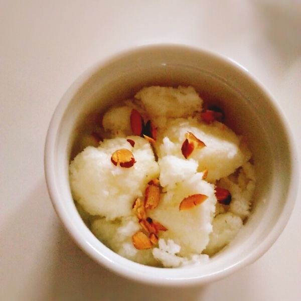 カルピスを使った簡単なシャーベット。アーモンドがアクセントになって美味しいんです^^ カシューナッツもおすすめですよ!