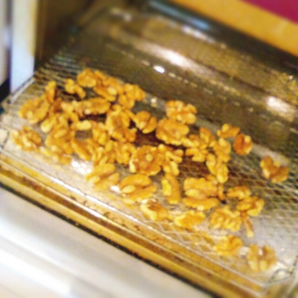 1つずつ丸めるのですが、この時に粗く砕いたローストクルミを包みます。私は、1個につきクルミ1.5こ分くらい入れています!(手が汚れていて丸めているところの写真がありませんが;)