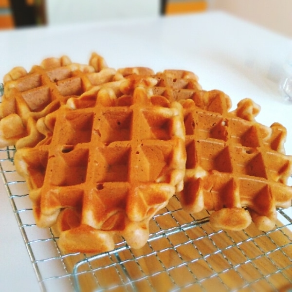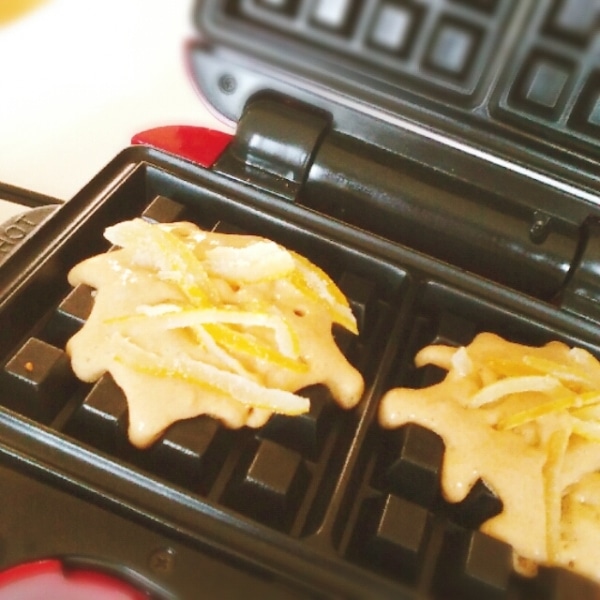 スキムミルクを使ってカロリーオフしたワッフルです。さっぱりした風味に合う「レモンピール」を使用しました。夏にぴったりですよ!