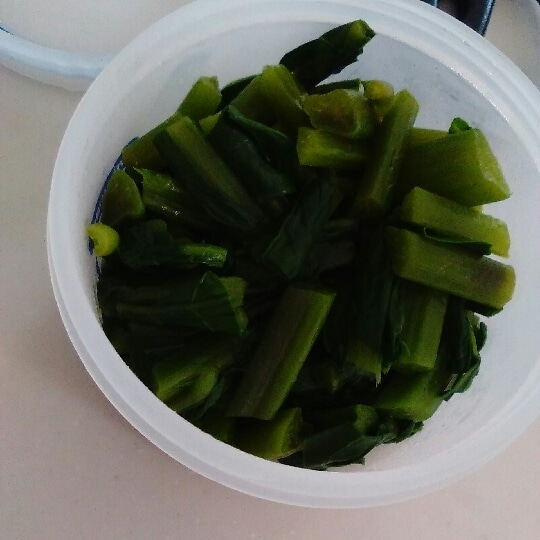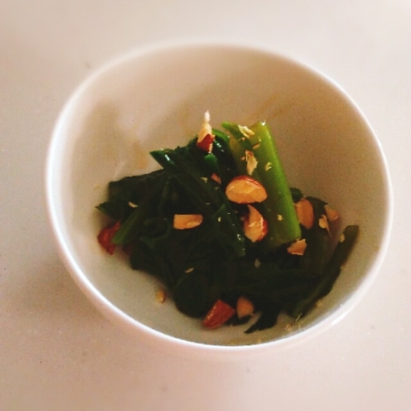 加賀野菜をいただいたので、シンプルに柚子胡椒で和えてみました。仕上げのアーモンドのおかげで香ばしさがプラスされて美味しいですよ。