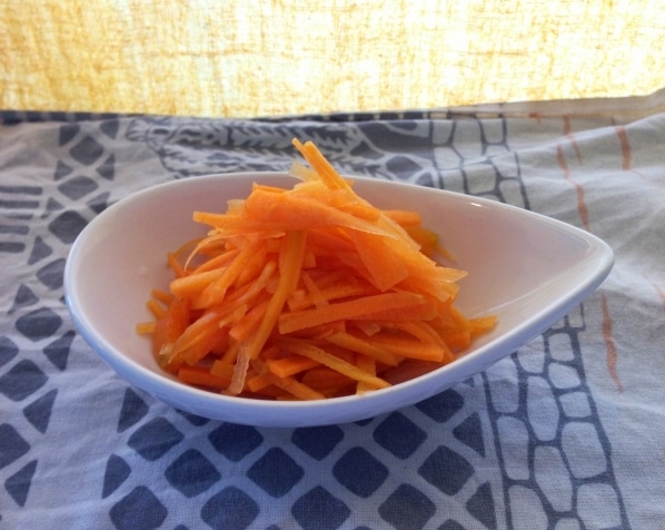 にんじんを細めの千切りにし、塩ひとつまみで塩もみする。