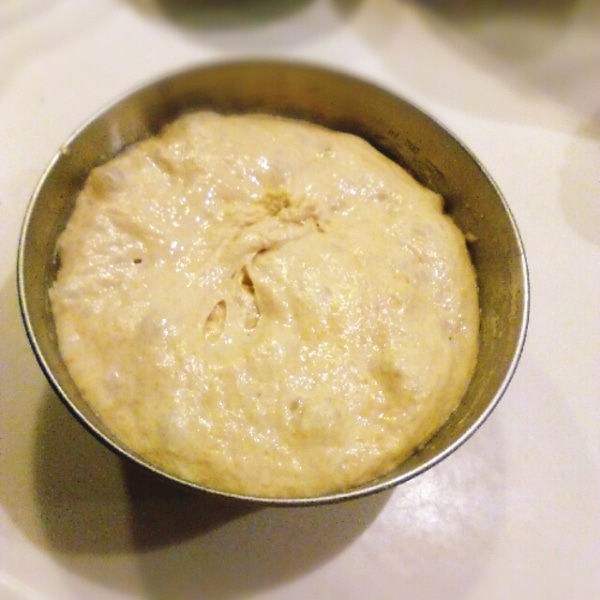 ラップをかけて、ポリ袋に入れて、野菜室で10時間くらい発酵させます。