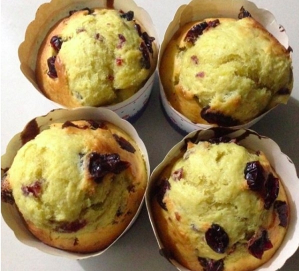 型に生地を入れ、残しておいたクランベリーをのせる。
