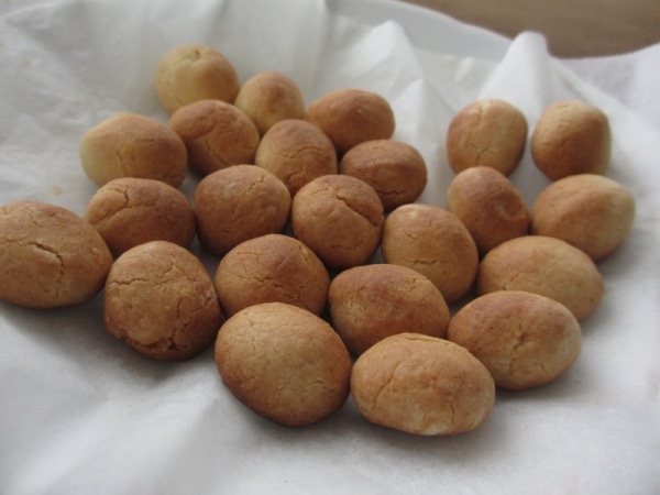 サラダ油も加え混ぜ、ひとつにまとまったら一つ分ずつ丸めてオーブンシートに並べる。