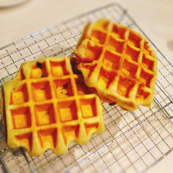 全粒粉がたっぷり入っているので、気長に発酵してください!ワッフルメーカーで焼くときは、なつめが外に出ない方が焦げずに美味しくできます。お好みでメープルシロップをかけて召し上がれ♪
