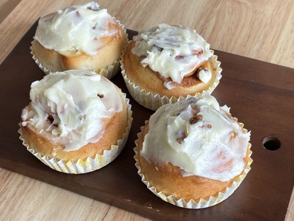 クルミは160℃で10分ローストして粗く刻む。シナモンパウダーとグラニュー糖を混ぜる。