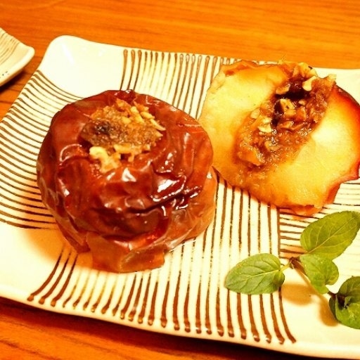 アルミホイルでリンゴを包み、180℃に予熱したオーブンで約30分焼く。