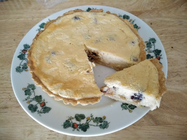 レモン果汁入りのカスタードクリームで、レアチーズケーキのような仕上がりになりました。タルト生地やアパレイユを焼く温度や時間は、オーブンによって多少異なってくるので様子を見ながら焼いてください。