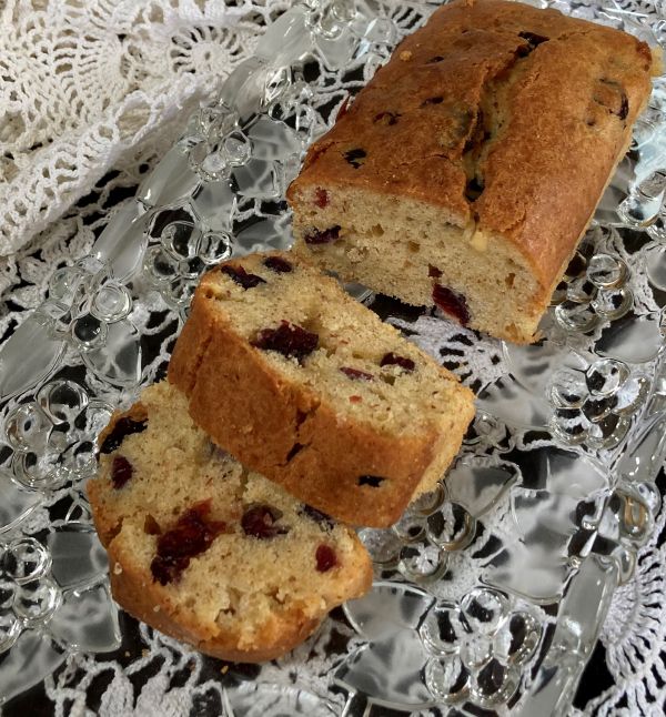 ホワイトチョコレートとクランベリーの入ったケーキです