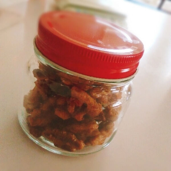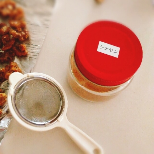 シナモンをきかせた、くるみのキャラメルナッツです。サクサクで手が止まりません!シナモンを多めに入れれば珈琲のお供に最適。主人はウイスキーと一緒に食べていますよ^^