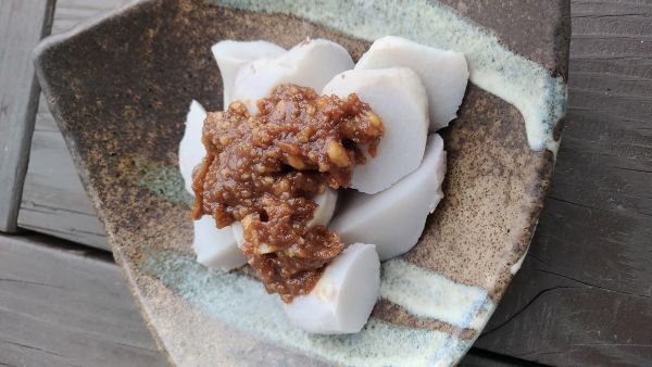 レシピトップ › くるみのレシピ › レシピ くるみの商品ページへ レシピ投稿 里芋のくるみ味噌だれ share × このレシピを共有 LINE X Facebook URLをコピー いいね! 甘みのあるくるみ味噌が里芋とよく合います。 posted by ラン子ラン子さんの他のレシピ 材料 (4) 里芋450g くるみ25g ☆砂糖大さじ1/2 ☆赤味噌大さじ1/2 ☆醤油大さじ1 作り方 1 里芋は、皮つきのままラップで包み、レンジで600w4分半加熱し、軟らかくなったら皮をつるりとむく。 2 1を一口大に切る。 3 フライパンにくるみを入れて、香ばしくなるまで炒る。 4 すり鉢で3をすり、☆の材料を全て混ぜる。 5 里芋を皿に盛り、4をのせる。 関連する商品 くるみ