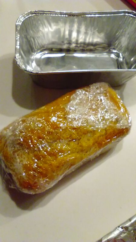 今回使ったのは、「作り方6」の画像にあるミニパウンド型です。100円均一に売っている使い捨てですが、クッキングシートをなかに敷けば繰り返し使えますよ^^