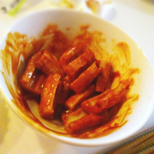 レンジを使ってアッと今にできる一品。お弁当の隙間が空いた時に便利です。