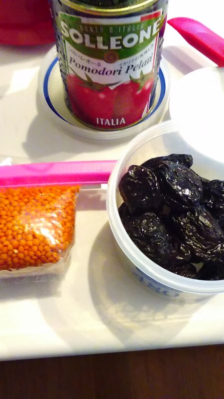 水戻しの手間がいらないレンズ豆。手軽に栄養が取れるのでお勧めです。甘みはプルーンだけ^^