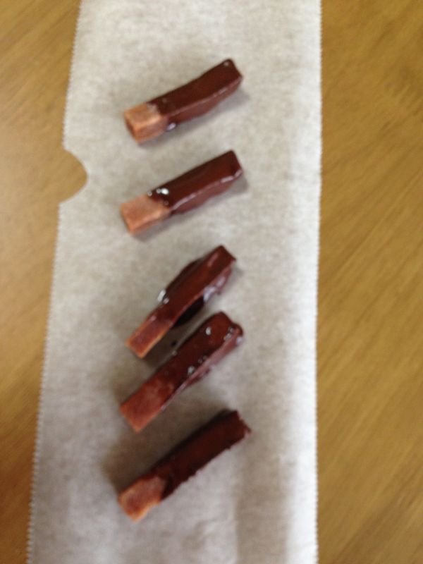 レシピトップ › サンザシのレシピ › レシピ サンザシの商品ページへ レシピ投稿 サンザシチョコ share × このレシピを共有 LINE X Facebook URLをコピー いいね!4 オレンジピールのチョコが美味しいので これもいけるかな?と作ってみたら大成功 posted by シロクマのママシロクマのママさんの他のレシピ 材料 (1人分) サンザシ五本 市販チョコ1個 作り方 1 サンザシの形の良いものを数本選びます 市販チョコは五本で一粒でちょうど良い感じでした。チョコはお好みですが70%カカオのビタータイプがサンザシの甘さと相性が良いようです 2 湯煎か、面倒な時は弱レンジでチンしてとかします 3 くるくる溶けたチョコをまとわせます 4 クッキングシートに並べ冷蔵庫か冷凍庫に冷やし寝かします 5 固まったら盛り付けて 紅茶と一緒がおすすめです(^-^)/ ラッピングしてちょっとしたプレゼントにも♬ 一言コメント 歯ごたえがあるので 小さなお子様やご年配の方用の時は細く切っても良いかもしれません 関連する商品 サンザシ