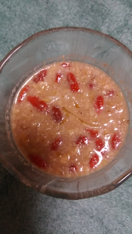 ②にクコの実、①のくるみを混ぜ、再度ひと煮立ちし火を止める。