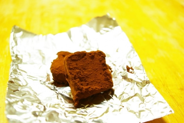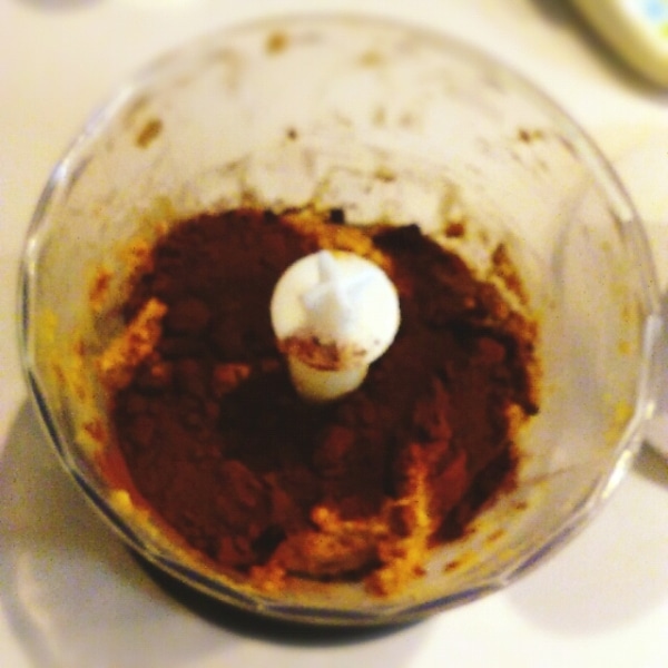 粘り気があるので、ミキサーがとまります。そのたびにゴムベラで中を混ぜてあげてください。しっかり撹拌すればなめらかなチョコケーキ風食感になります。TOP画像はココアパウダーをトッピングしたもの。そのままでも美味しいですし、苦いのがお好きならココアパウダーを振りかけて食べてもOK。