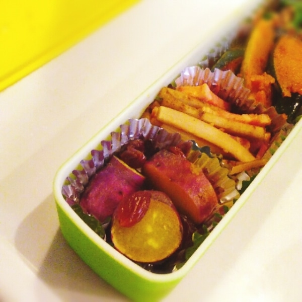 レーズンがサツマイモの水分でふっくら。水戻ししなくてもドライレーズンが美味しくいただけます。味付けしていないので、レーズンの量を増やしても^^