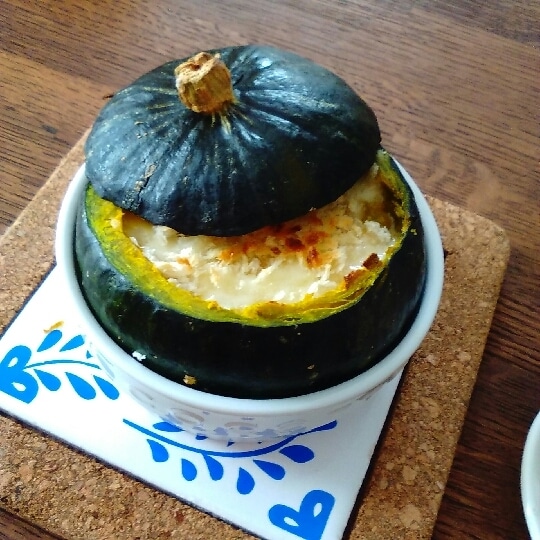 カボチャグラタンに合わせて、パンプキンシードを混ぜ込みました。香ばしい食感が楽しい即席グラタンです^^
