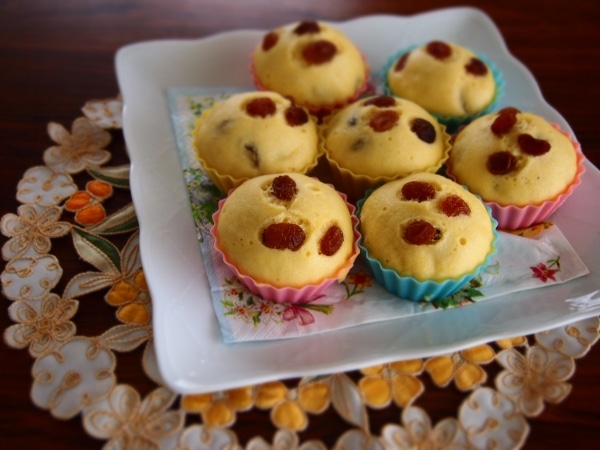 レーズン入り米粉のたまご蒸しパン