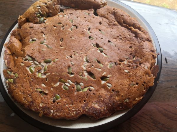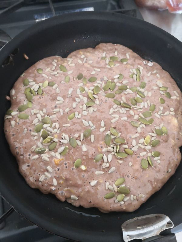 ナッツを落とした表面に泡がプツプツできてきたら、ひっくり返す。