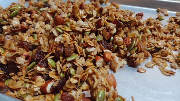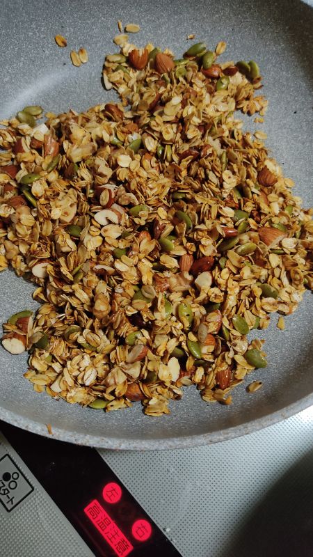 フライパンで簡単にできます。いちじくのプチプラ感とナッツのザクザク、オートミールのサクサク感がたまりません♡朝食やおやつにおすすめ!