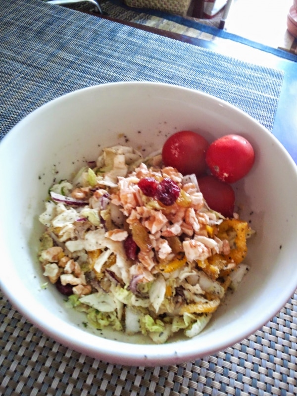 ゴマと生クルミのコク+レーズンとクランベリーの甘酸っぱさが癖になる美味しいサラダです