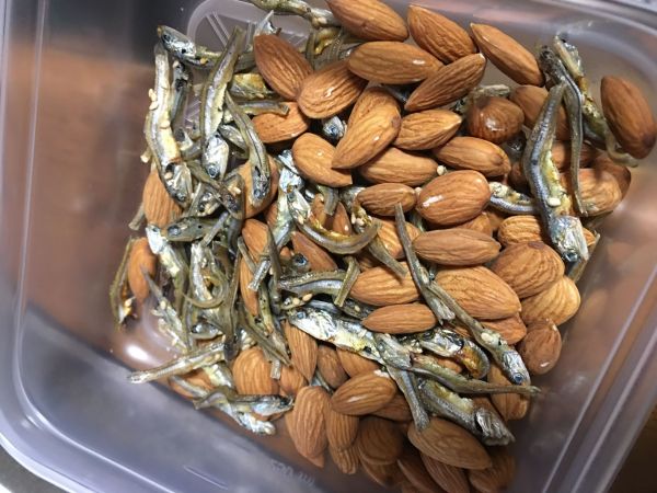 質の良いごまいりこが、生アーモンドのまろやかさにくるまれて、おいしいです。市販のものは話になりません。別のゴマイワシも準備したのですが、少々大きすぎだったので後回しにしています。