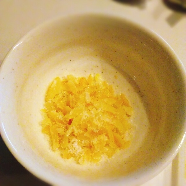 レモンピールはしっかり湯を切ること。キッチンペーパーで拭いてもいいです。