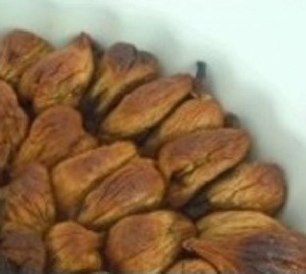 ドライいちじくに切り込みを入れて、イチジク1個に対してアーモンド1粒と、レモンの皮のスライス1枚を挟んだ後、160度で20分焼く。